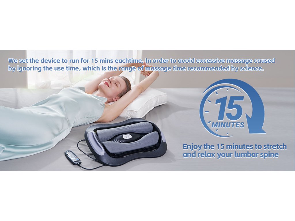 Standardní relace s Multifunkčním masážním přístroemj Shiatsu na bederní páteře obvykle trvá 15 minut. Toto trvání vytváří rovnováhu mezi poskytováním účinné bederní podpory a zajištěním ovladatelného a pohodlného zážitku pro uživatele.