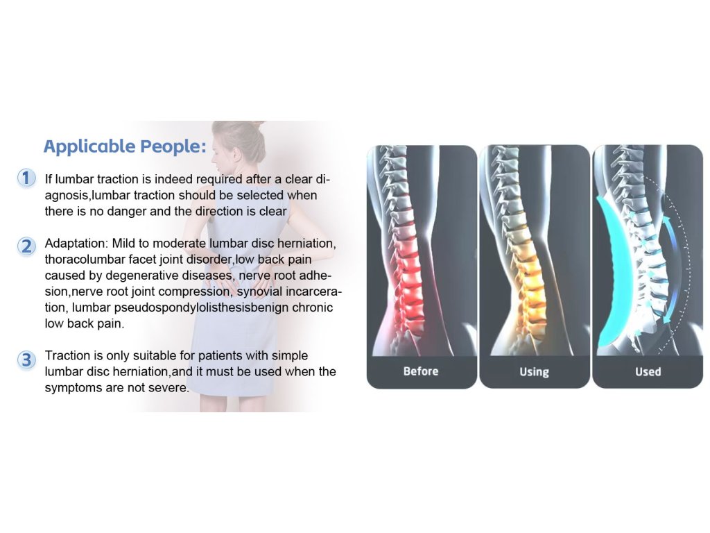 Fyzikální terapie bederní trakce a masáž pro úlevu od bolesti bederních zad