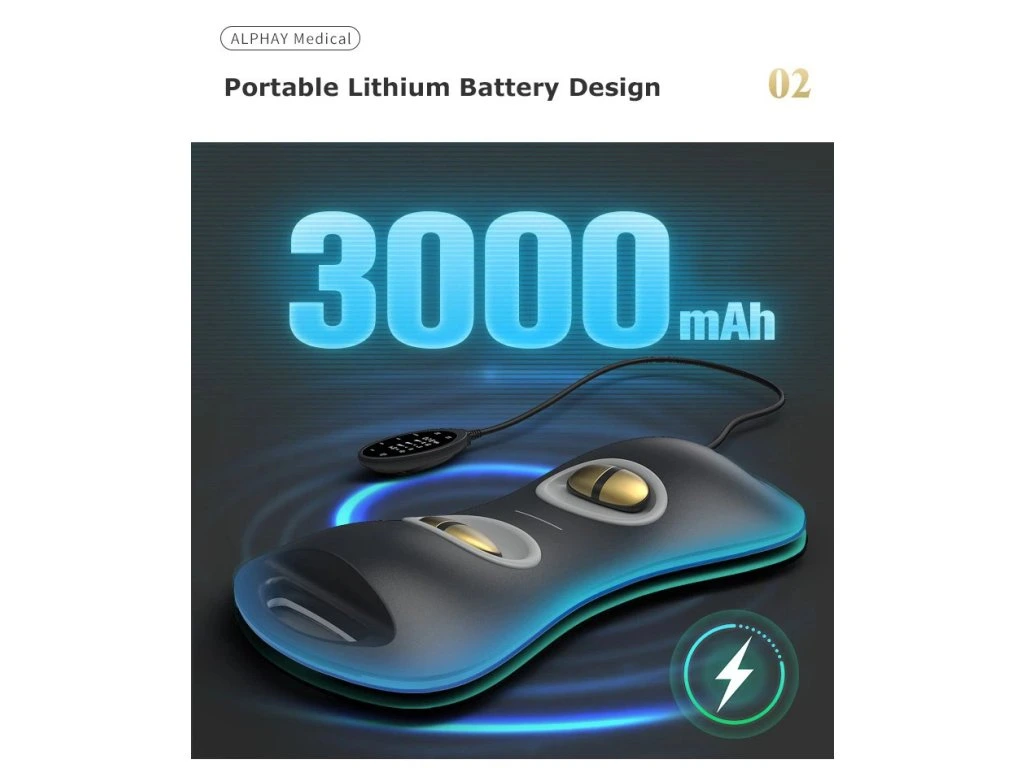 Díky vestavěné lithiové baterii nabízí zařízení bezšňůrovou svobodu, takže si můžete vychutnat relaxační úlevu kdykoli a kdekoli - aniž byste byli omezeni zásuvkami.